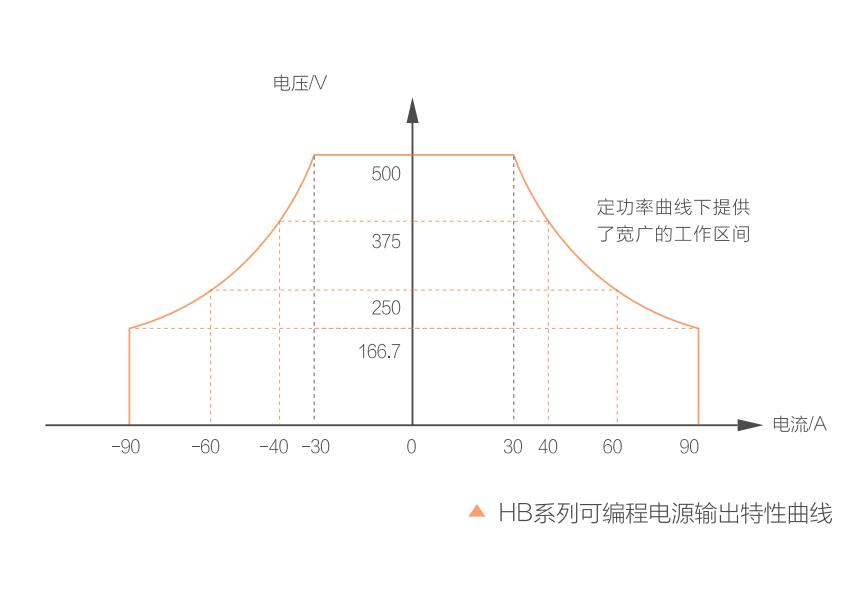 相较于传统固定范围输出直流电源,双向可编程直流测试电源HB系列在功率区间内,各种电压、电流组合都能够全功率输出,单台双向可编程直流电源涵盖了3台传统电源的输出范围。例如500V/90A/15KW型号的HB系列双向可编程直流电源能够提供500V30A的输出,或者166.6V 90A的输出,并且具备在166.6V-500V之间任意电压点提供15KW的满功率输出或馈电能力,大幅度降低系统搭建的复杂度及占用的空间。