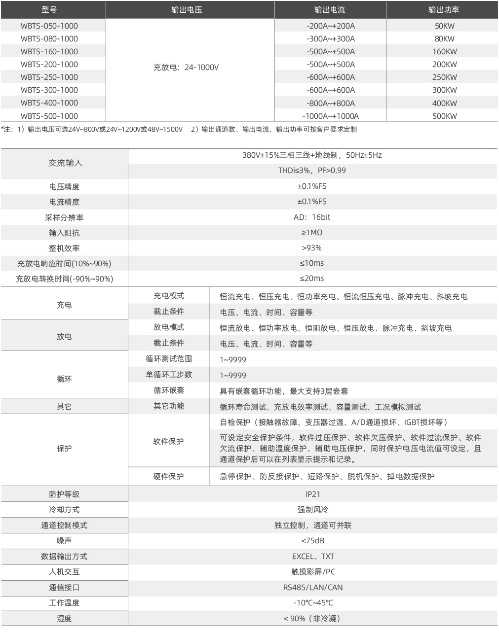 动力电池PACK测试系统为动力电池包充电放电、工况模拟等测试而开发。采用四象限PWM 整流、双向BUCK变换、纯数字化控制等核心技术开发,具有能量双向流动100%能量回馈、精度高、瞬态特性迅速、转换效率高、对电网污染低、通讯接口丰富、保护功能强大等主要特点。
